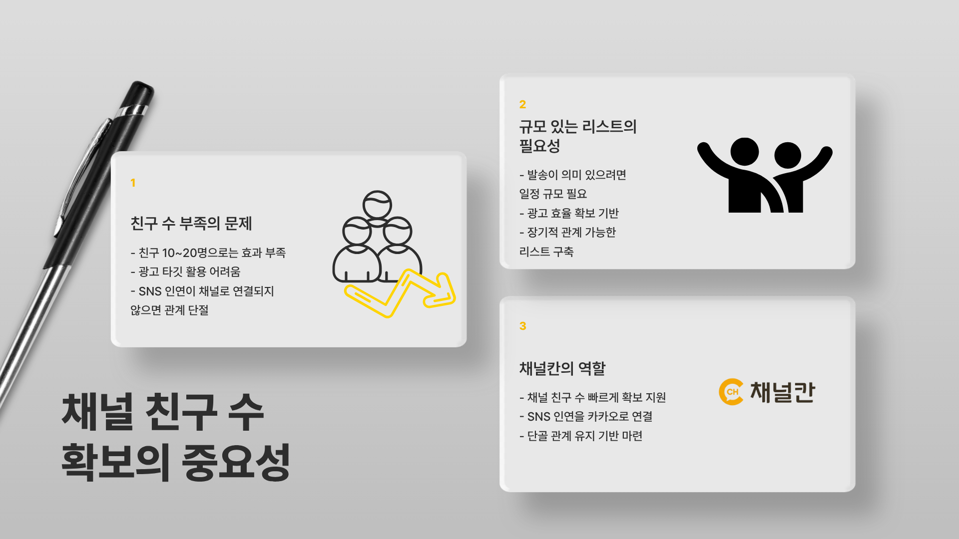 채널칸은 이 친구 수를 빠르게 확보하는 데 도움을 드리는 서비스입니다.