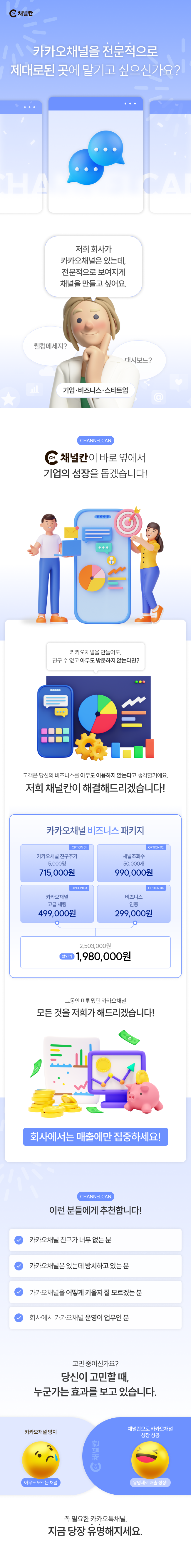 카카오채널을 본격적으로 셋팅하거나, 기업&비즈니스에서 필수인 상품입니다.